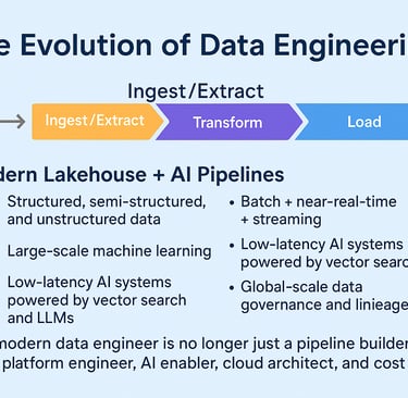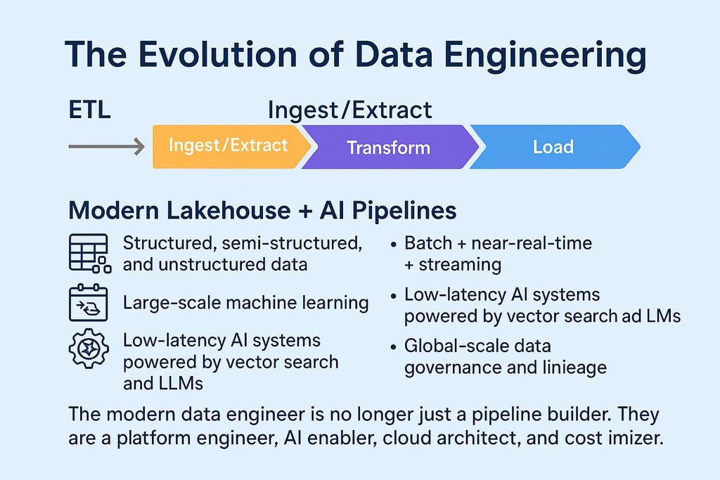 The modern data engineer is no longer just a pipeline builder. They are a platform engineer, AI enabler, cloud architect, and cost optimizer.